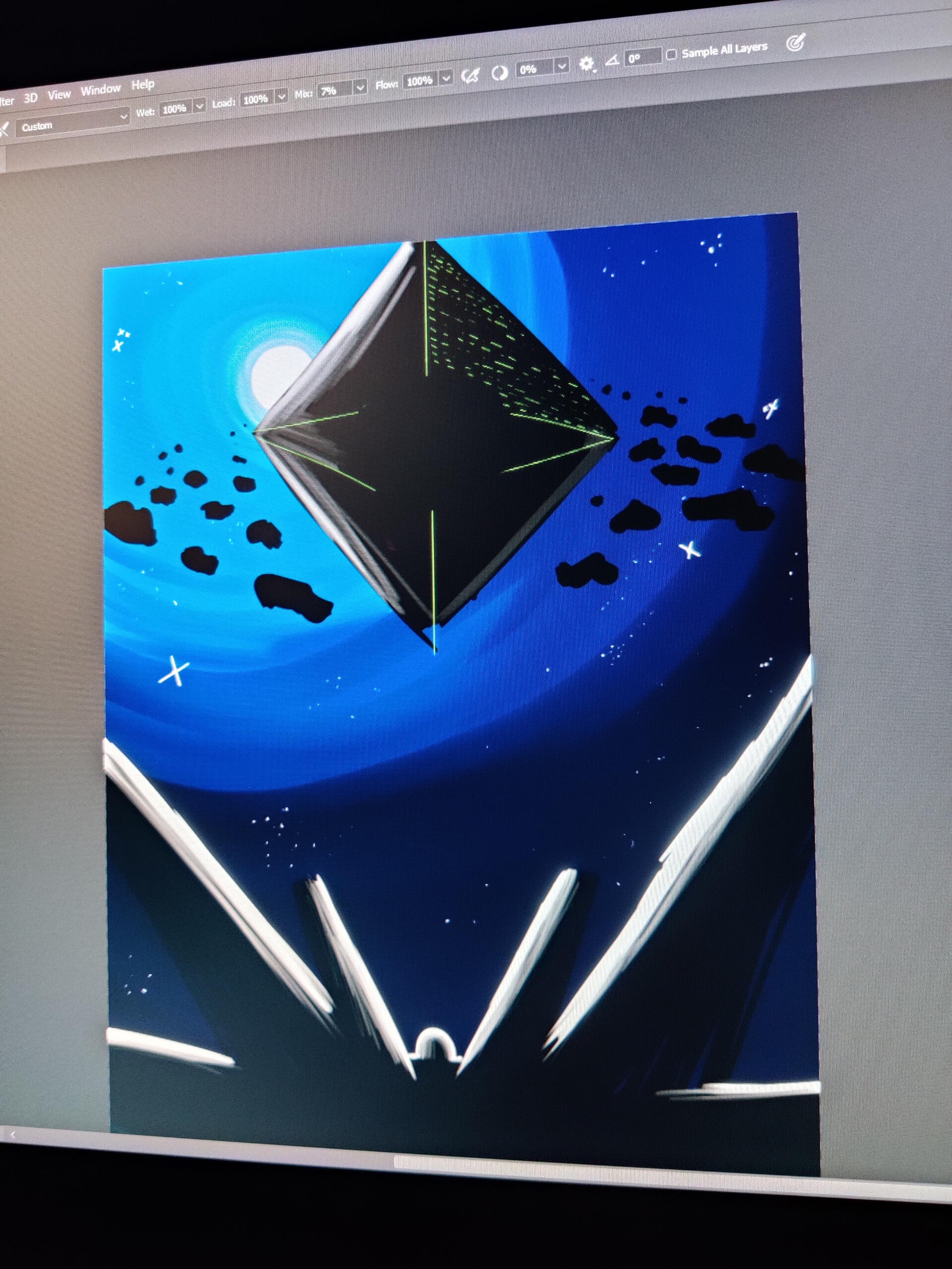 Here's a pretty cool piece I did around the time I saw Across The Spider-Verse. I absolutely love the style of the spot's scenes from his backstory to Miles's vision. I wanted to do a piece that's similar to the style. It's nothing crazy and I really think I could've done better with the details within the spider eyes, but as is it's not bad and I had fun figuring out the halftone effect.(I SHOULD BE PUTTING MY SIGNATURE ON THESE)
